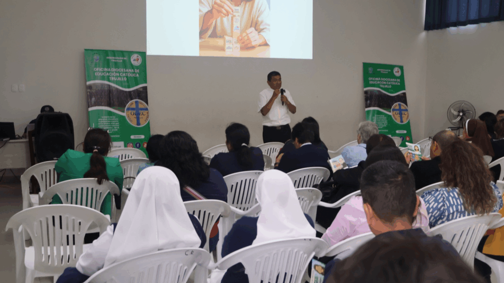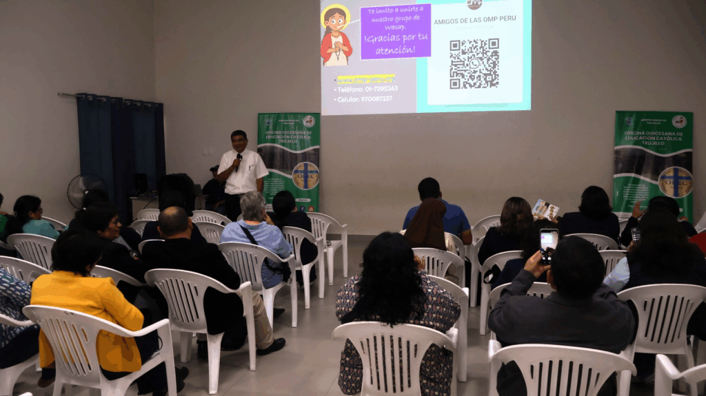 El miércoles 5 de noviembre, el P. José Hipólito Purizaca, Director Nacional de las Obras Misionales Pontificias (OMP) del Perú, sostuvo un encuentro con los directores y promotores de las instituciones educativas de la Iglesia en la ciudad de Trujillo.
