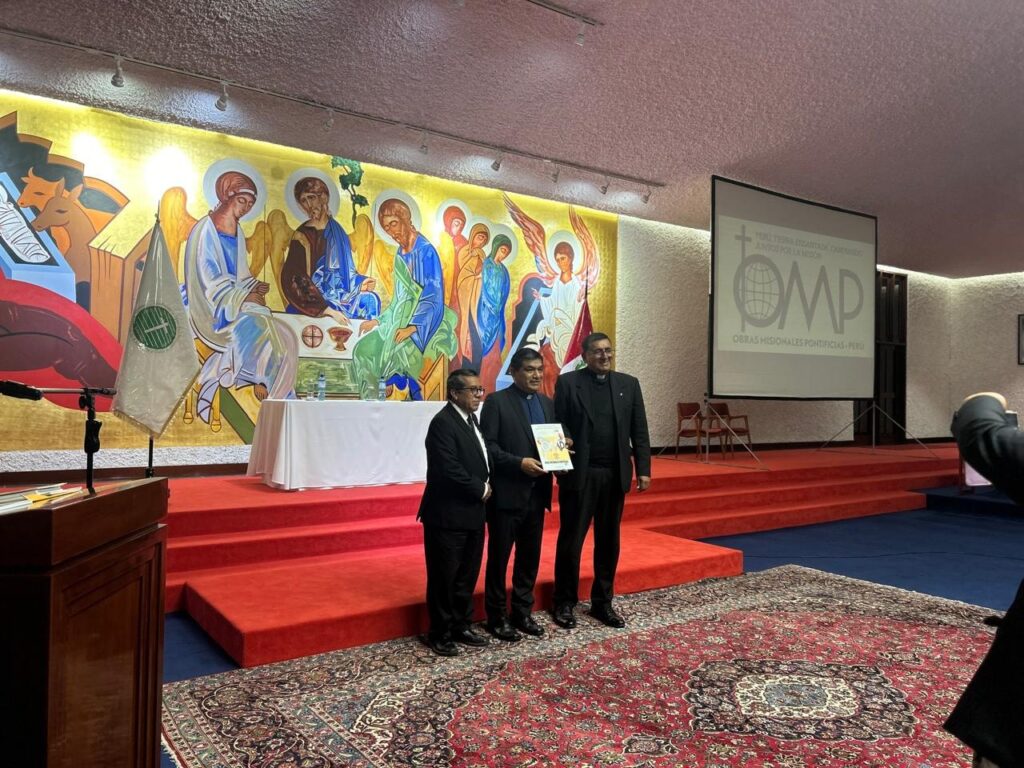 Se entregó el Proyecto Misionero al P. Richard Santos, Secretario Ejecutivo de la Comisión Episcopal para la Educación, Cultura y Bienes culturales; y al profesor Alfredo León Sánchez, Director de la Oficina Nacional de Educación Católica.