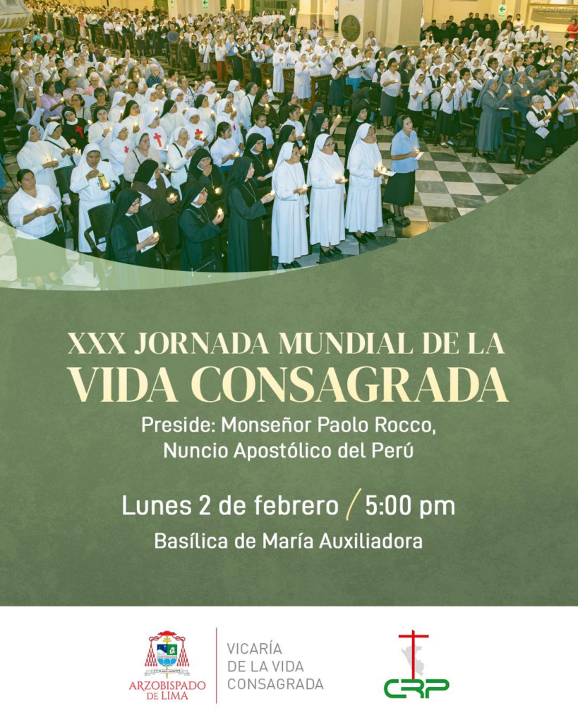 La Vicaría de la Vida Consagrada de la Arquidiócesis de Lima invita a todas las comunidades y congregaciones religiosas a participar en la XXX Jornada Mundial de la Vida Consagrada, un encuentro de fe y comunión que celebra la entrega generosa de quienes han consagrado su vida al Señor.